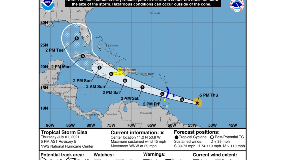 Heres the latest forecast track of hurricane Elsa which could could make landfall in Florida early next week according to the National Hurricane Center. Tropical Storm Claudette is located about 120 miles west of Columbus Georgia and.