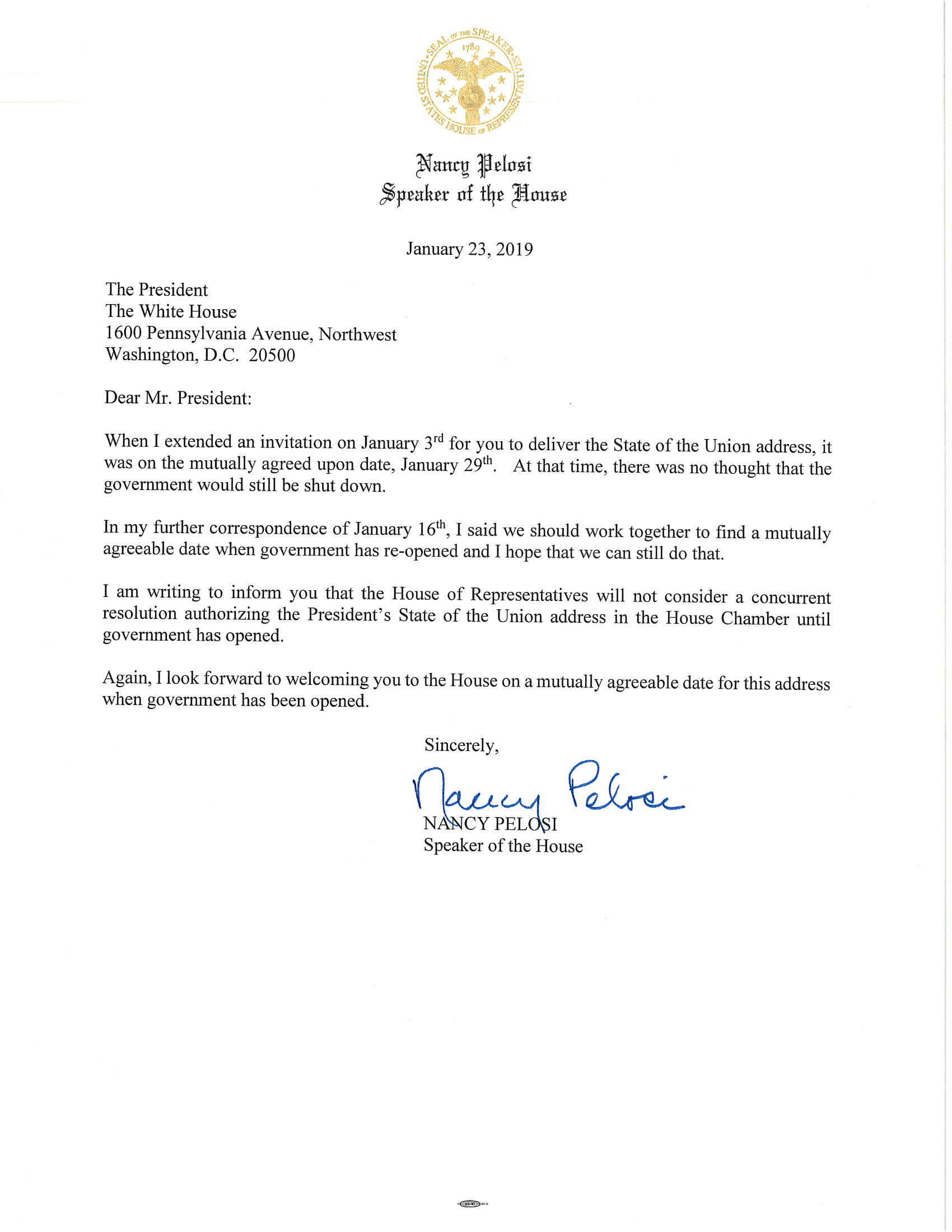 Speaker Pelosi Sends Letter To President Trump On The State Of The Union Address By Speaker Pelosi Medium